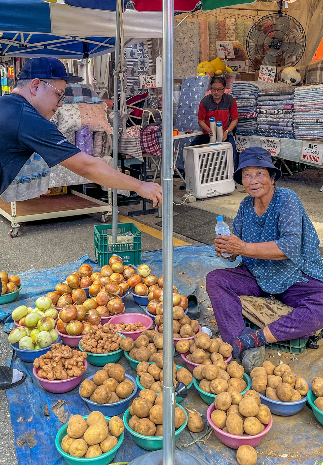 오일장에는 전통 재래시장 특유의 활기와 넉넉한 인심이 넘쳐난다. 시장으로 들어서면 신선한 채소와 제철 과일, 싱싱한 생선, 입맛이 절로 도는 수제 반찬 등 지갑이 자꾸 열리는 시장 먹거리들이 수두룩하다. 시장 한쪽에는 태극기 떡을 재현해서 판매하는 떡집도 눈길을 사로잡는다. 찹쌀과 천연색소로 만드는 태극기 떡은 태극 문양과 사괘를 그대로 구현해서 만들기 때문에 3.1절, 광복절, 개천절 등 나라의 기념일에 맞춰 떡집을 찾는 손님들이 많다.