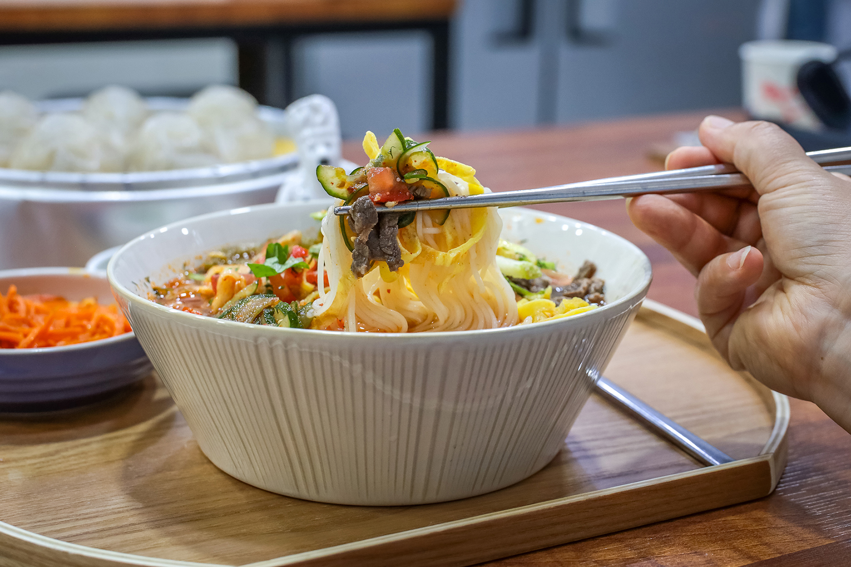 ‘엄마손만두 플로리다’에서도 독특한 국수를 맛볼 수 있다. 한국인 남편과 고려인 3세 아내가 운영하는 만두와 국수집인 플로리다는 아내의 이름을 따서 지었다는데, 모든 메뉴는 고려인 아내가 요리한다. 매일 직접 빚는 중앙아시아식 만두 ‘만트’, 양배추와 소고기가 들어가는 고려인 만두 ‘비고지’, 우리나라 잔치국수와 비슷한 고려인 국수 등 다양한 음식을 맛볼수 있다. 고려인 국수는 과거 스탈린의 강제이주정책으로 연해주에서 중앙아시아로 건너간 고려인들이 우즈베키스탄, 타슈켄트 등에 정착하면서 만들어 먹은 소울푸드다. 중앙아시아 지역에서 살았던 안주인의 고려인 국수는 낯설지 않다. 국수 위에 고명으로 올리는 피망 볶음, 소고기볶음, 오이절임, 양배추김치, 달걀지단과 토마토, 오이채와 고수와 허브가루 등이 올라간 생소한 비주얼의 국수지만, 맑은 토마토 육수가 시원하고 상큼해서 이국적인 국수 맛 사이로 왠지 모르게 잔치국수의 친근한 맛이 느껴진다.